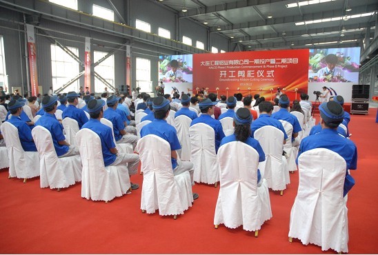 2013-08-222013年8月22日上午,終于迎來了全體員工期盼已久的“一期投產暨二期開工剪彩儀式”,儀式在大連匯程鋁業寬敞宏偉的廠房內,舉行了隆重的儀式,慶祝我司一期項目投產暨二期項目開工建設。