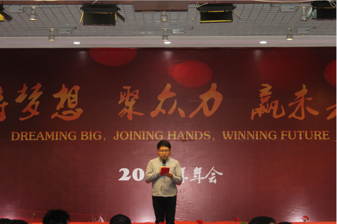 設備工程部高級工程師王磊,作為公司優秀青年的代表,擔任本次年會主持人。宣布年會暨表彰大會開始。