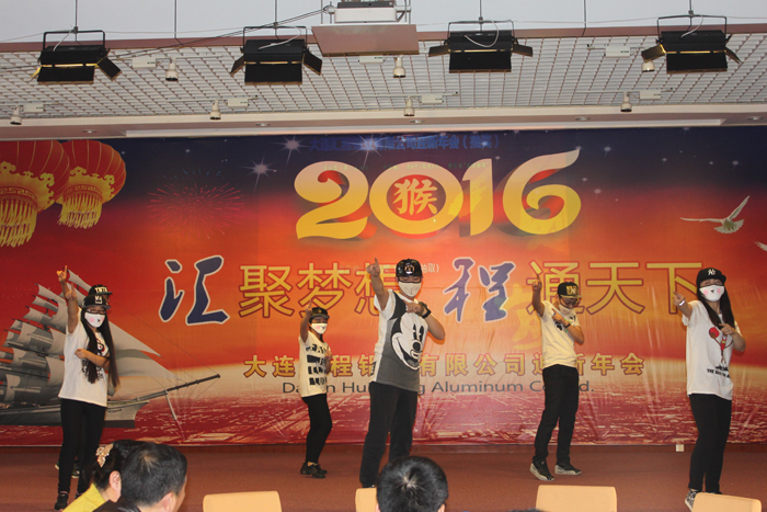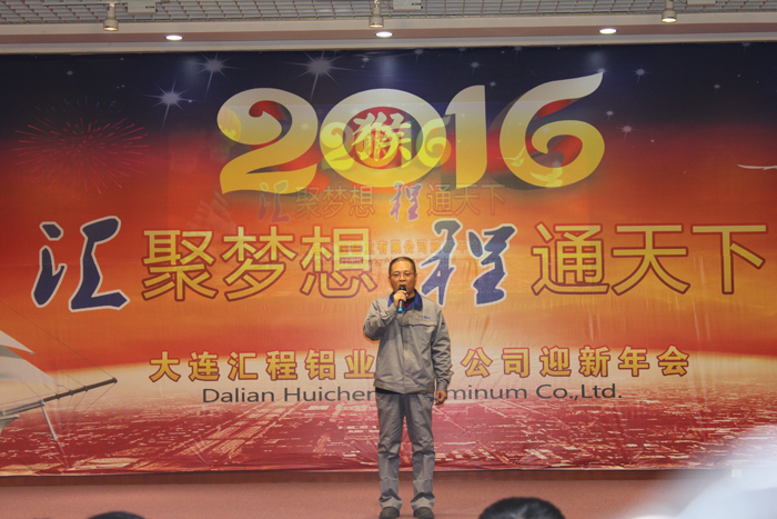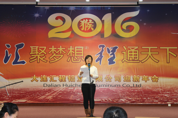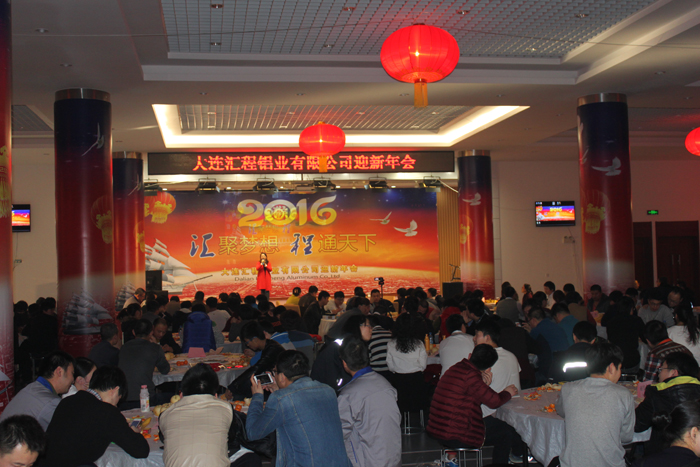 2015年12月28日大連匯程鋁業有限公司“2015年優秀員工表彰大會 暨 2016年迎新年會”在員工活動中心隆重舉行。公司主要領導與全體員工一同參加了此次活動。整個活動歷時四個小時,包括董事長致辭、優秀員工表彰、優秀員工發言以及員工文藝匯演等環節。活動進行中,掌聲數次響起,笑聲此起彼伏,全場始終洋溢著振奮、進取、熱烈、愉快的氣氛,精彩紛呈。
